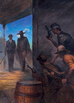 The Confederates claim it but their control is anything but absolute. Geronimo and his Apaches control the country side while the Cowboy Gang, made up of the Clantons, run the town when there aren’t Confederate Soldiers around. Doc Holliday, alone, stand against the Clantons. He’s dieing of consumption and has no fear of the brutes. He keeps threatening to bring his friend Wyatt Earp to town for a while. Thus far it ain’t happened but it keeps the Clantons on their toes.