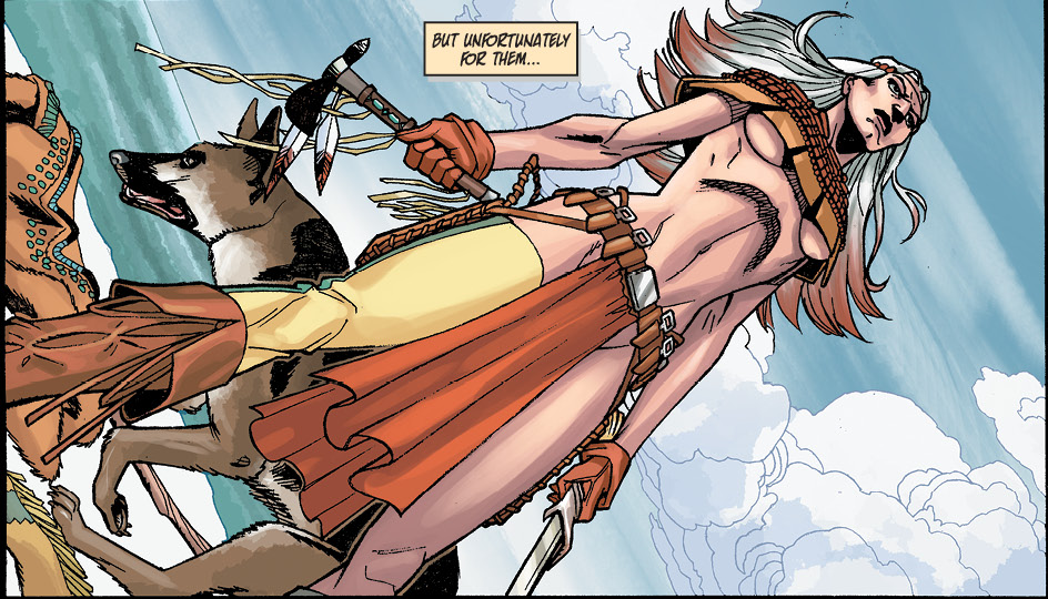 This comic features lots of action scenes with a half naked warrior women killing misogynistic villains. Given the comics I've seen for sale at the game store, I'd say there's a big audience for that. It's probably the biggest seller in the series despite the story problems.